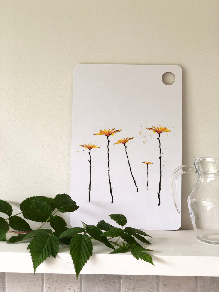 Keltaiset kukat leikkuulauta 20 cm x 30 cm
